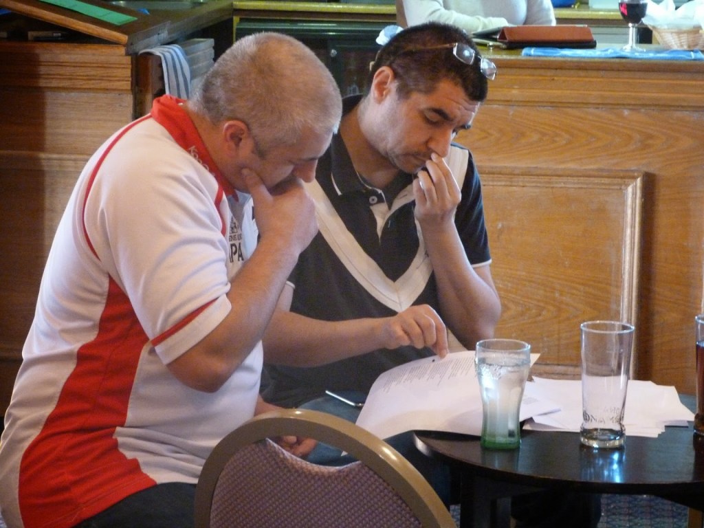 Claire Lawrence, Mark Holtom and Liz Cole preparing to go…Peter Drew, Liz Cole and Mark Holtom – watch Bex in Dictionary CornerRobert checking where the hell he is on Marion’s autocueMark Holtom – occasional GodForeground, Marion and Tim, working the tech..