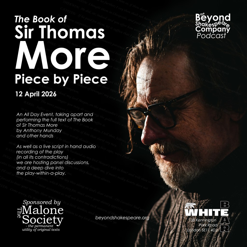 The Book of Sir Thomas More: Piece by Piece – Sunday 12th April 2026 from 1pm at the White Bear Theatre, Kennington